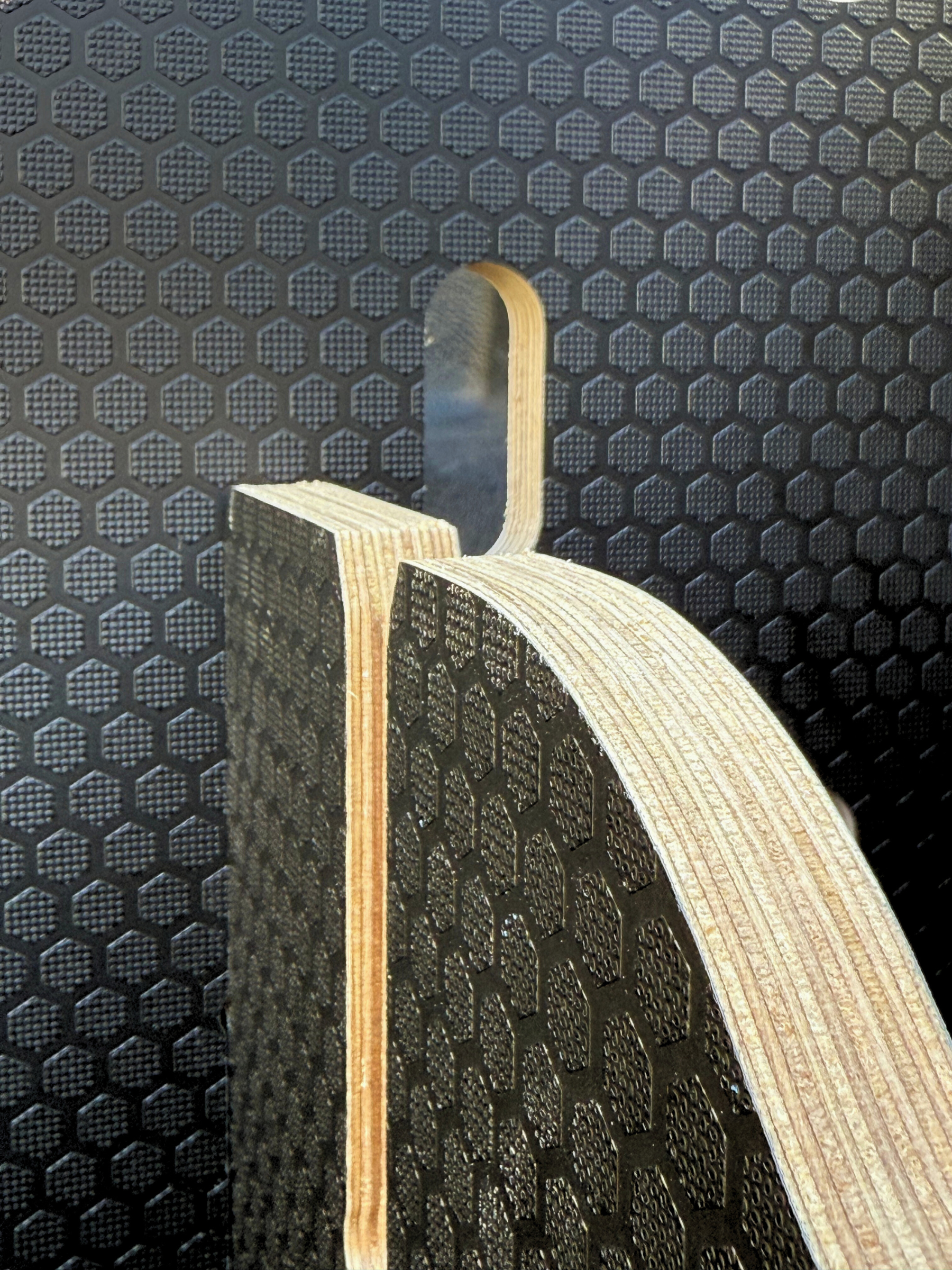 WP Black - Weatherproof with hard wearing HPL face layers. Hex pattern on frontside, plain black on backside.